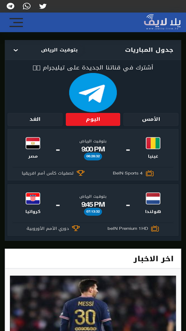 يلا لايف yalla live tv مشاهدة مباريات اليوم بث مباشر بدون تقطيع yalla tv live موقع يلا لايف مباريات اليوم yallalive يلا لايف كورة مباشر yala live tv. يلا لايف yalla live tive مقصدكم المتميز الذي تتمكن من خلاله من مشاهدة اهم مباريات اليوم بجودة عالية يلا لايف كورة بث مباشر بدون تقطيع حيث يملك موقع يلا لايف الأصلي yalla tv مجموعة كبيرة من سيرفرات البث. يلا لايف yalla live هو موقعك المفضل لمشاهدة أخبار مباريات اليوم على موقع.